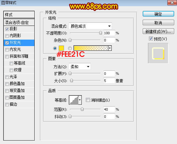 光泽:混合模式“颜色减淡”,颜色为橙红色:#ff6407,然后设置等高线,如图15,其它设置如图14。