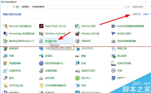 2、在控制面板中,选择查看方式为大图标或者小图标,然后点击"程序和功能"