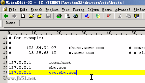 为了能够在本地实现访问abu.com的时候能够解析到127.0.0.1 我修改本机的hosts文件