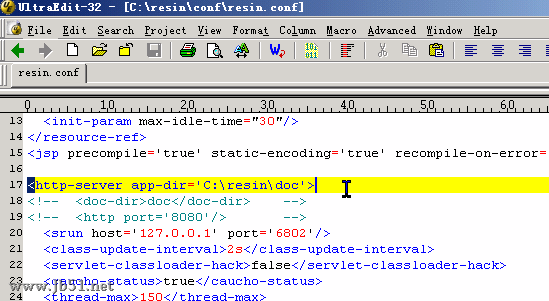 接下来,我修改c:\resin\conf目录下的配置文件resin.conf