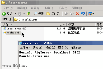 下面添加一个resin.ini文件到先前建立的dllrun目录