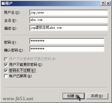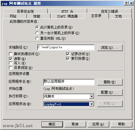 最后别忘了给这个网站的运行权限设定为刚才的jsp_user用户。
