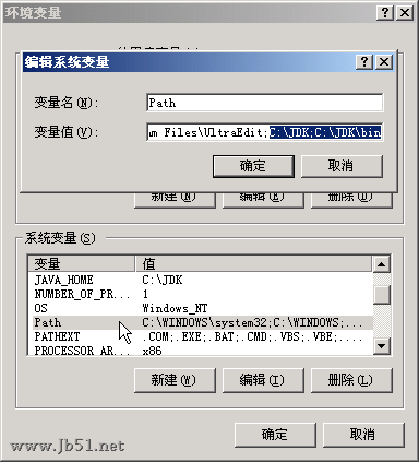 path 路径里添加 c:\jdk;c:\jdk\bin