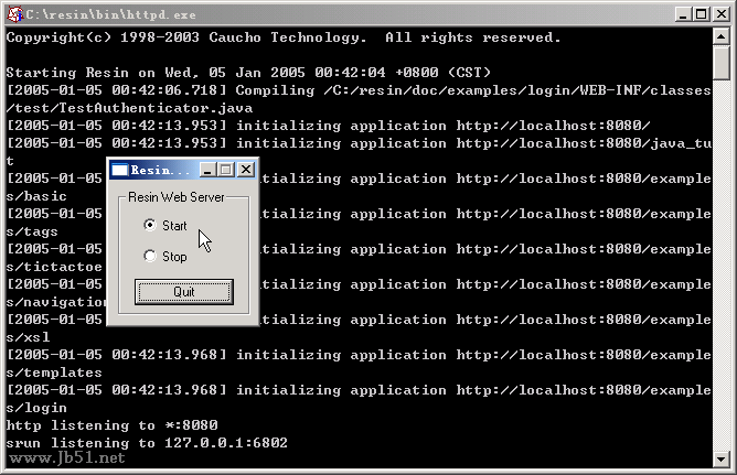 接下来我们继续,运行c:\resin\bin\httpd.exe