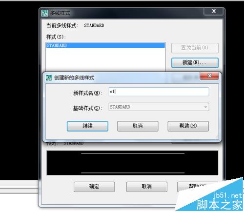 2、新建-创建新的多线样式界面,输入多线样式的名称 C1,然后确定。