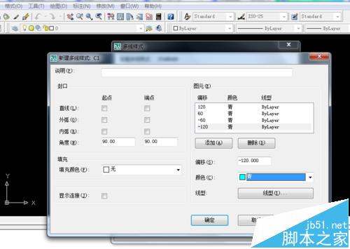 3、弹出多线C的编辑界面,修改图元参数。24墙一般就如下图所示修改偏移、颜色和线。