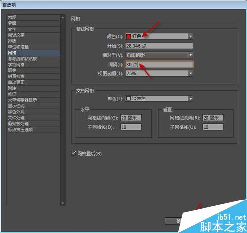选择【编辑】/【首选项】/【网格】菜单命令。