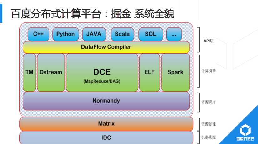 百度已经介绍了百度大数据分析和挖掘平台主要的底层引擎和架构,接下来谈一下最新思考。