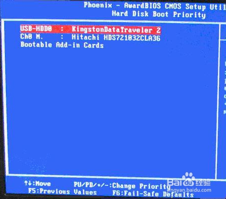 硬盘启动优先级(Hard Disk Boot Priority)选择:使用小键盘上的加减号“+、-”来选择与移动设备,将U盘选择在最上面。然后,按ESC键退出,回到上图的设置界面。