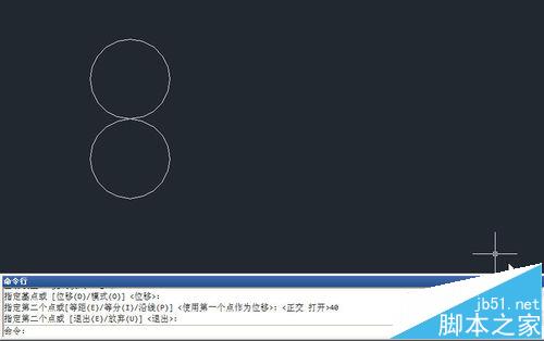 2、输入CO,回车,选择圆,捕捉圆心作为基点,按F8打开正交,向上拖动光标,输入40,回车,只在上方复制一个圆,如下图所示。