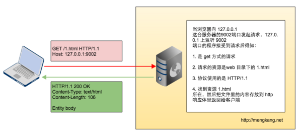 1.客户端通过发送一个 http 请求到服务器,如果服务器监听的端口号是9002,那么在本机自身测试访问的地址就是 http://localhost:9002/1.html 。