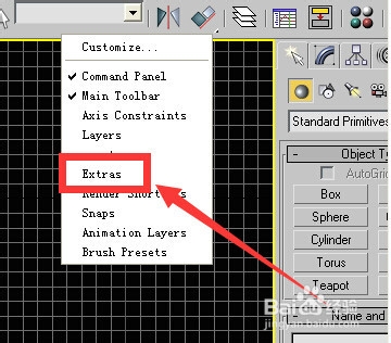 4、鼠标左键单击extras这个命令