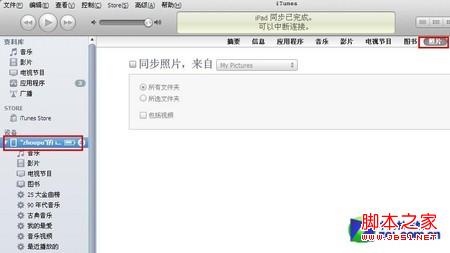 同步时,iTunes会将文件夹内的所有照片都导入iPad