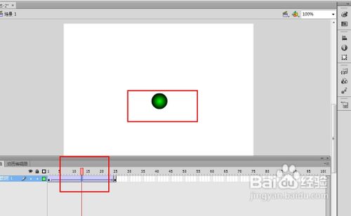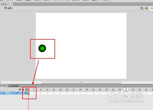 1)这时我们选中图形,然后在我们想要创建第二个关键帧的时间轴上单机选中。