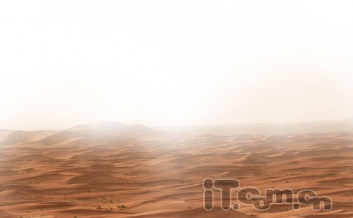 一、创建一个大小为1024*768 px的新图片,背景为白色,打开“沙漠”素材并粘贴到图片中,设置大小和位置,如图所示。