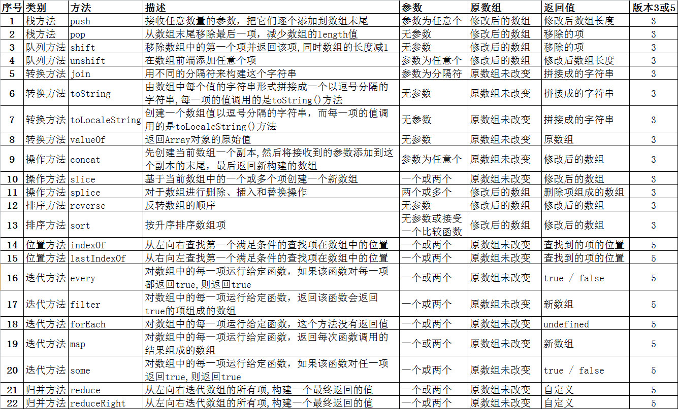 [数组的22种方法概述]