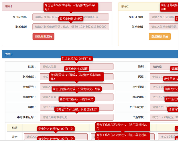 当表单失去焦点时,如果不合法,会直接提示错误。点击提交时,如果有表单项目不合法,会阻止表单继续提交。