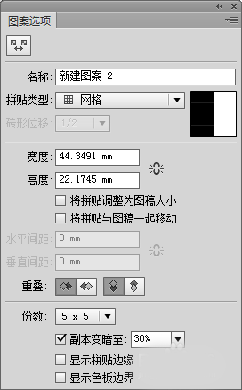 1、在创建自定义图案过程中,我们曾经看到这样的一个”图案选项“的设置面板,在面板的第二栏里面就有一个”拼接类型“的设置