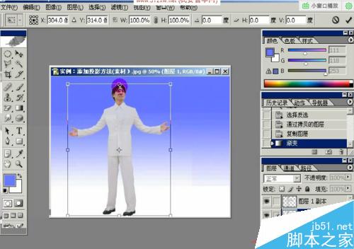 第三步:如图所示用 CTRL+T键,然后选择人物,把人物的图像往下移动