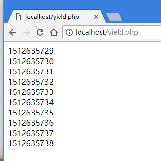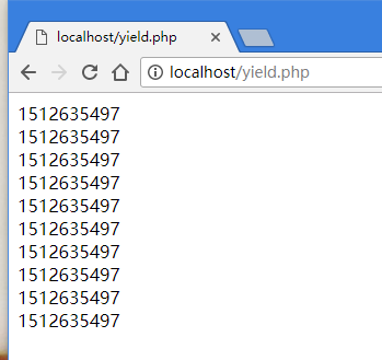 看下这段和刚刚很像的代码,我们删除了数组$data,而且也没有返回任何内容,而是在time()之前使用了一个关键字yield