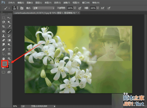7、接下来更改前景色为灰色,选择好颜色后点击【确定】,按照之前的方法进行涂抹,这时图像又呈现出了半透明状。