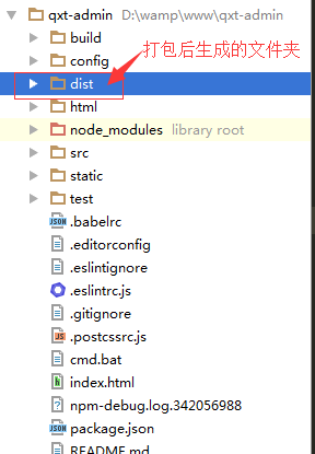 打包后,项目目录下会生成dist文件夹,这就是我们的整体项目。如图所示: