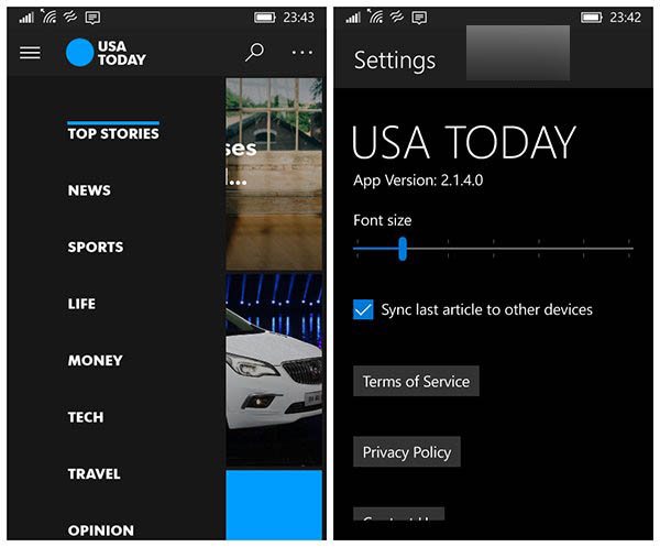 此前靠谱客曾报道过,Win10通用应用《今日美国》上架商店的消息,当时还仅提供给Windows10 PC用户使用。现在随着Win10 Mobile预览版10512的推送,用户可以正常下载Win10应用,《今日美国》也升级新版本已支持手机系统。
