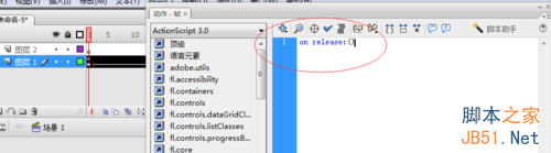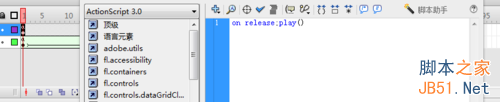 5、之后同样在按钮的第一帧处编写代码,on play()。