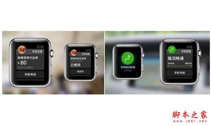 在最新发布的apple watch应用中,卡片化的设计应用也很频繁。在下面这个手机百度的界面中,卡片化的设计能够把团购的重要信息一览无遗的展现出来。手机百度中地理位置服务也采用了卡片化的设计,保证不同的卡片组合及内容展现均能突出服务内容。。