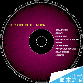 14、最后输入标题:DARK SIDE OF THE MOON。作完这些,我们就可以用CDROM的辅助线蒙版它了。