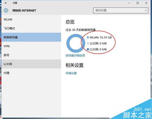 5、这个可以看到30天的数据使用情况分别能统计wlan和以太网的数据流量