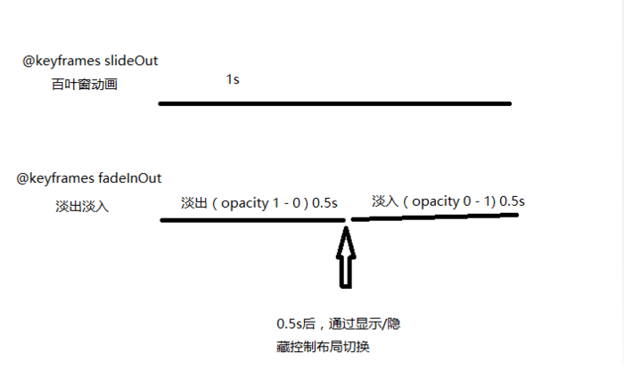 2,keyframes定义淡入淡出(透明度改变)和百叶窗口效果动画。
