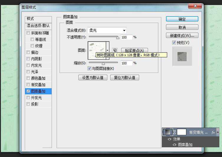 感觉光是一个渐变,有点单调,所以我加了一个图案叠加,这个图案是自带的。