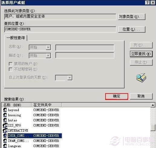 步骤五:从搜索结果中找到以IUSR_开头的用户点击【确定】,得到如下图所示的界面: