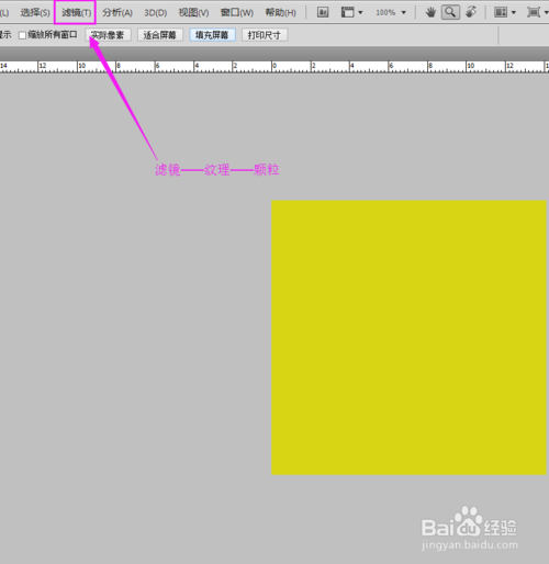 操作:滤镜——纹理——颗粒——确定。颗粒强度值:27,对比度:68,类型:水平(这样就会出现一种纹理的效果)。