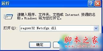 在运行框中输入regsvr32 /u Netcfgx.dll,单击确定按钮