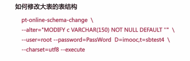 使用pt-online-schema-change命令来修改大表,具体操作如下图所示