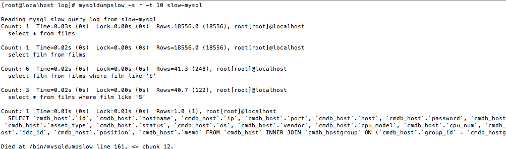 常使用的慢查询日志分析工具(mysqldumpslow)
