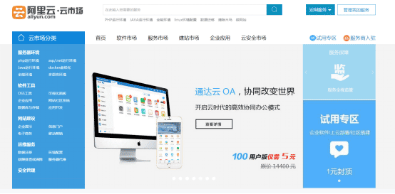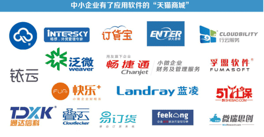在本次上线的“企业应用”频道里,中小企业用户可以像逛天猫品牌店一样,挑选财务、销售、生产研发、办公等企业信息化管理各环节所需的软件服务,并享受云市场独有的5分钟软件交付、1元封顶试用等服务。这不仅降低了企业软件的部署成本,而且提供了试错的机会,避免了一旦部署无法退换的尴尬。