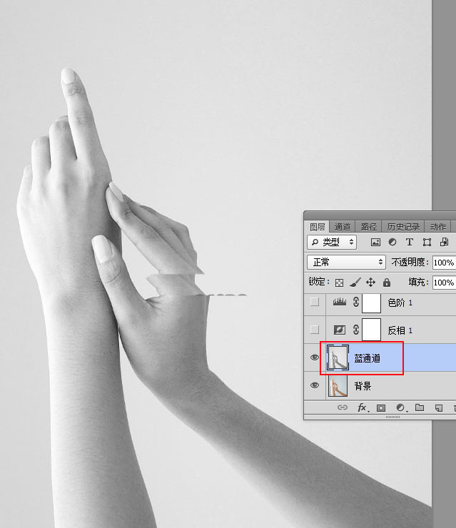 3、点RGB通道回到图层面板,新建一个空白图层,按Ctrl + V 粘贴,并命名为“蓝通道”,效果如下图。