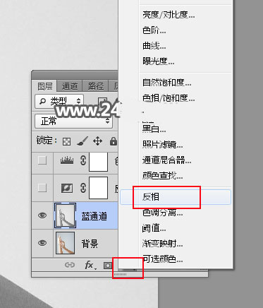 2、进入通道面板,观察一下各通道,选择一个对比较大的通道。蓝通道比较理想,选择蓝通道,按Ctrl + A 全选。