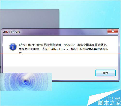 1、在ae中,除了软件自带的之外,通常我们都会从网上下载一些插件进行安装。这里以Plexus插件为例,来说明一下,如果您在安装的过程中多安装了该插件,当你打开ae软件的时候,它每次都会提示您安装了多个版本,请移除旧版本或者不需要的版本。