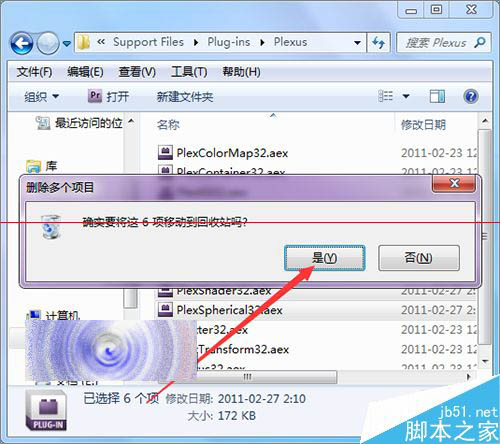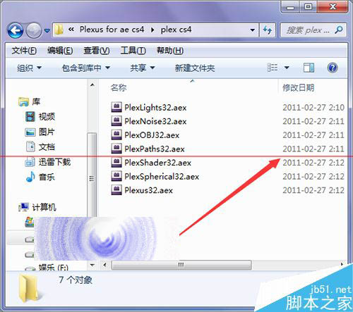 11、可以看到当我们输入Plexus后,可以在Support Files的文件夹中找到两个不同时间的的插件版本。一个是之前我们删除的02-27的版本,另一个是之前留下的版本02-23。知道在这个文件夹中多余的另一个版本的话,就可以找到它的位置并进行删除。