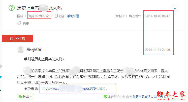 上图中我们可以看到,这条知道的浏览量是92万,而且内容还是带连接的,我们在看时间已经有47天的时间了,那么47天的时间,每天都会有上万的流量进入网站,我们在去看看他是靠什么存货这么长的时间呢!在看一张图: