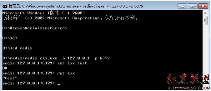 打开一个cmd窗口 使用cd命令切换目录到D:\redis 运行 redis-server.exe redis.conf