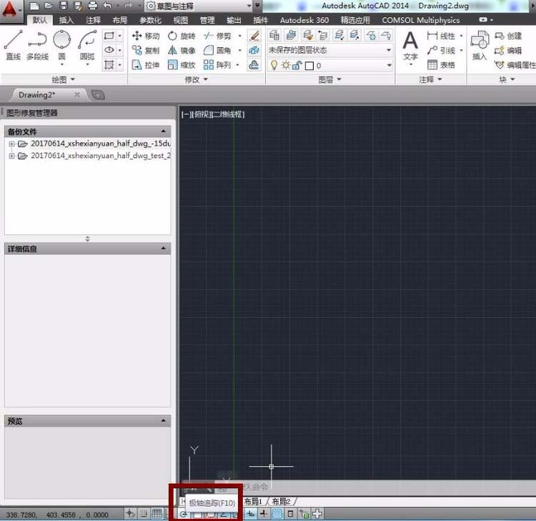 1、新建一个dwg文件并右击右下角“极轴追踪”,选择“设置”。