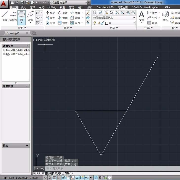 3、开始绘制,追踪角度是30的倍数时有绿色的线条提醒。先画一条边。