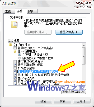 这儿附带也说下关闭全部文件的预览功能的方法,打开Vista资源管理器(或计算机),单击“工具”→“文件夹选项”,在打开的对话框中切换到“查看”标签,然后在“高级设置”区域中拉动右侧的滑动块找到“始终显示图标,从不显示缩略图”。