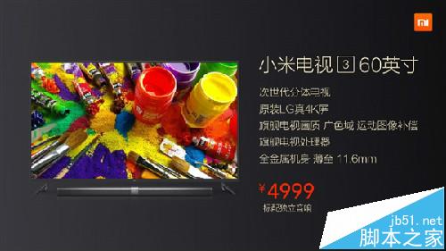 最后,小米电视3的售价为4999元。