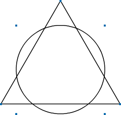 现在我们来切割圆形对象,首先选择它,然后应用刻刀工具在圆形轮廓上移动,由于打开了 snap to point ,那么当鼠标移到上次三角形与圆形的交点时会出现一个实心的小点,这时点击圆形便可以切割它,依次在相关交点上 点击,将圆形进行分割。